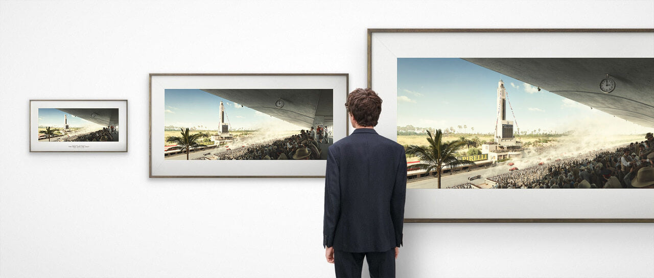 We design each print using a world-unique combination of 3D renderings and CGI technology allowing us to re-create each car to precise coats of paint and scratches with a level of detail never seen before.