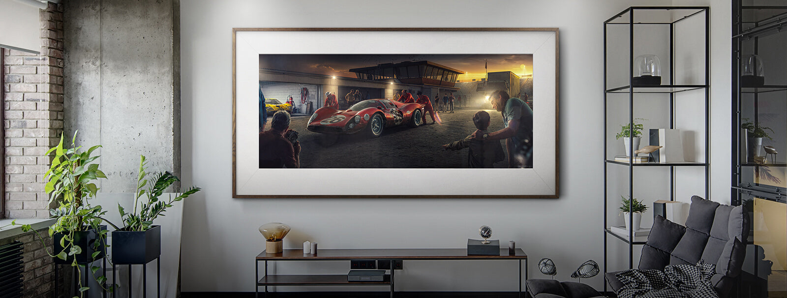 What you see is not a photograph. It is a 3D artwork featuring authentic renderings, all designed and built in 3D from scratch. This is how we capture and recreate moments from modern and historic motorsport in an artwork like never seen before.