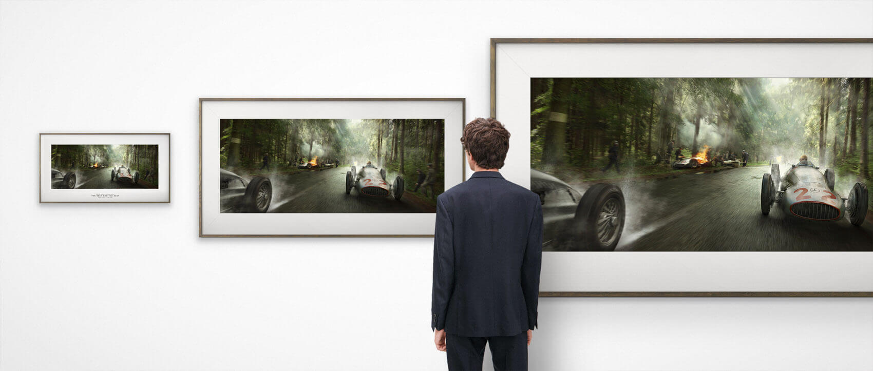 We design each print using a world-unique combination of 3D renderings and CGI technology allowing us to re-create each car to precise coats of paint and scratches with a level of detail never seen before.