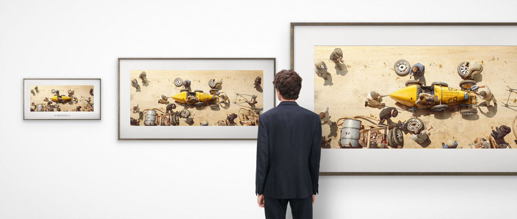 We design each print using a world-unique combination of 3D renderings and CGI technology allowing us to re-create each car to precise coats of paint and scratches with a level of detail never seen before.