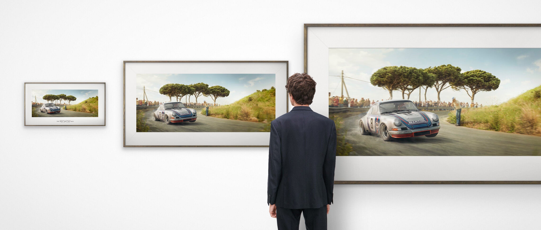 We design each print using a world-unique combination of 3D renderings and CGI technology allowing us to re-create each car to precise coats of paint and scratches with a level of detail never seen before.