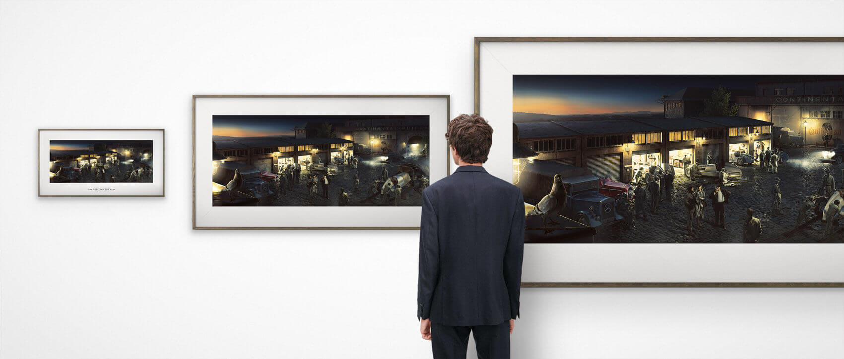 We design each print using a world-unique combination of 3D renderings and CGI technology allowing us to re-create each car to precise coats of paint and scratches with a level of detail never seen before.