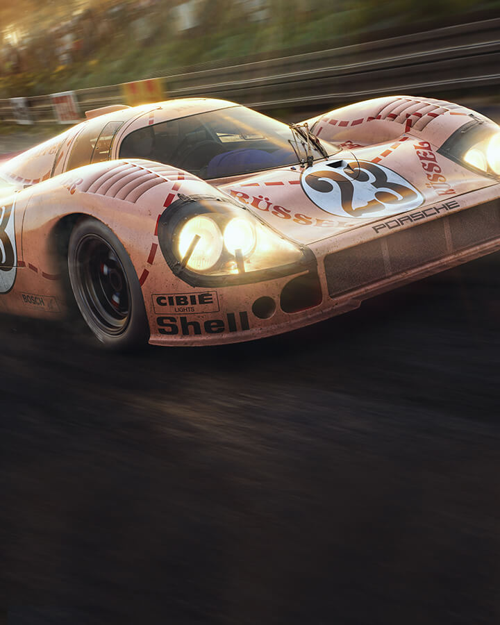 Participant aux 24 Heures du Mans 1971 aux côtés d'une escadrille d'autres Porsche, l'inhabituelle 917/20 peinte en rose était la star du spectacle. Pour honorer l'audacieux « cochon rose », nous nous sommes associés à Porsche pour créer un hommage digne d'un tel véhicule : l'estampe d'art.